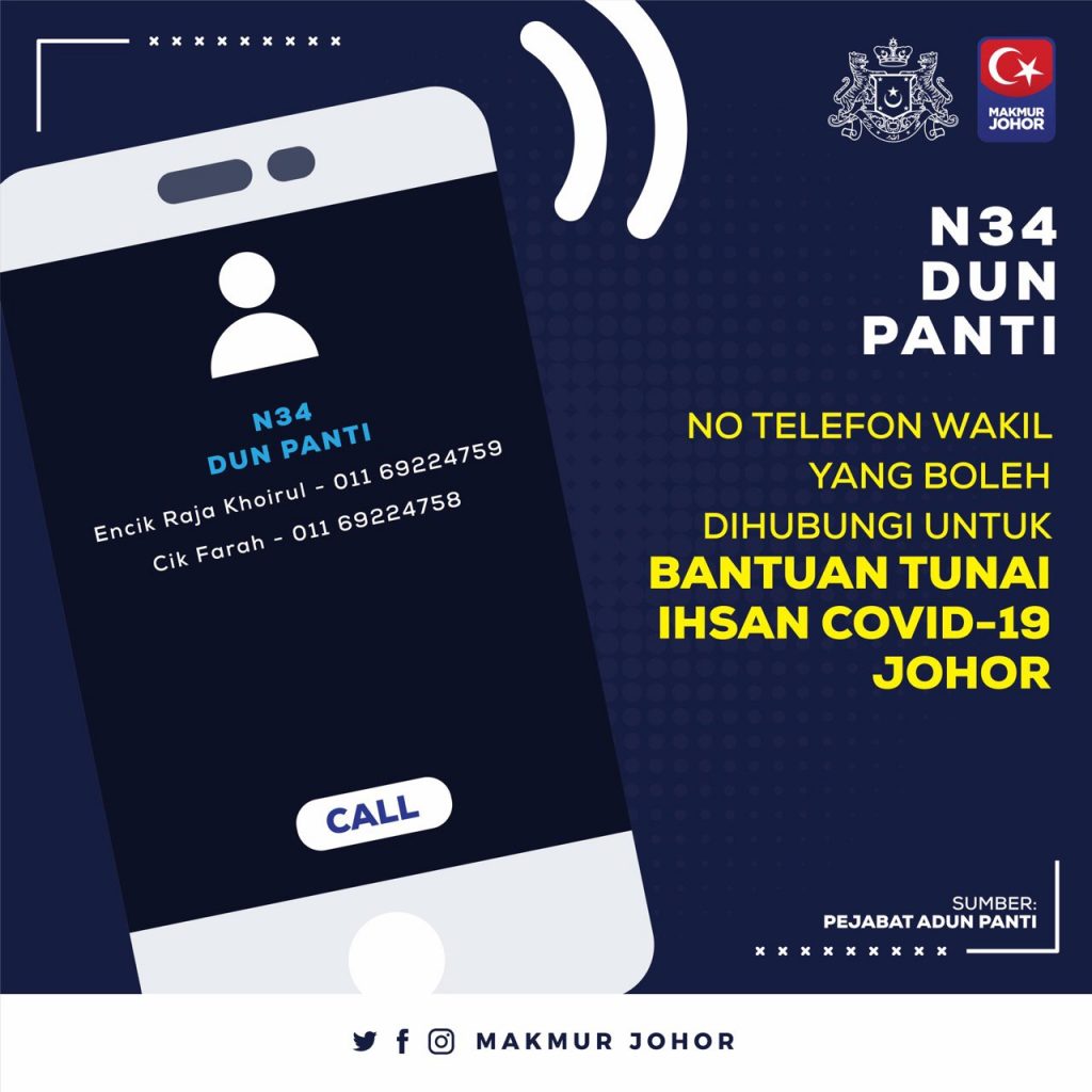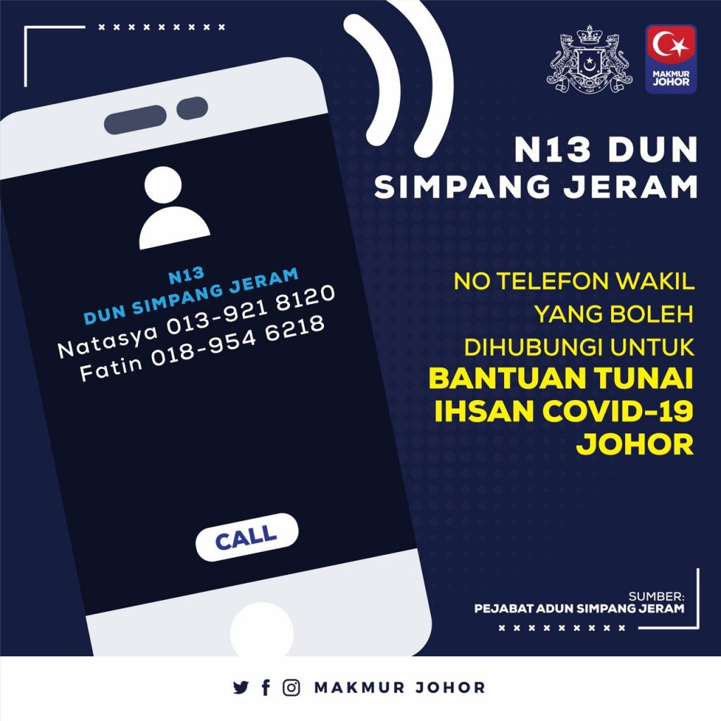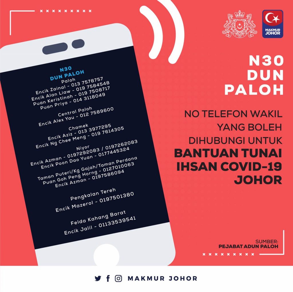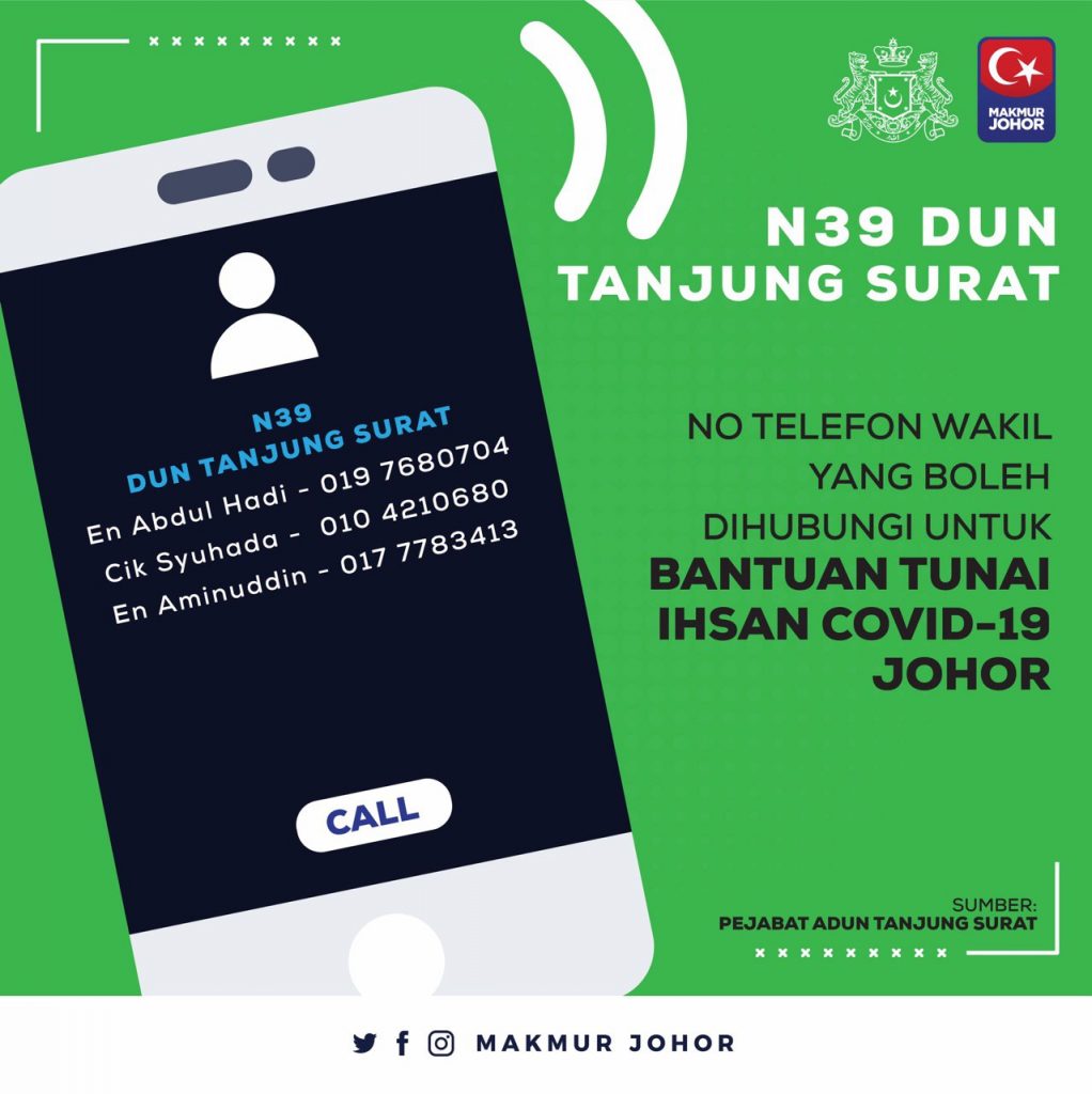 “Ini termasuk sama ada mahu kami (Kerajaan Negeri Johor) buat melalui akaun-akaun bank yang dimaklumkan ataupun sekiranya tidak mempunyai akaun bank, mereka bolehlah berurusan dengan Pejabat Daerah melalui penghulu atau ketua kampung untuk mereka menerima bantuan yang ditetapkan,” katanya.