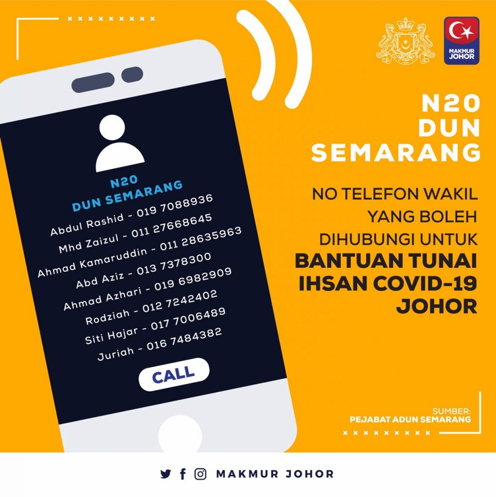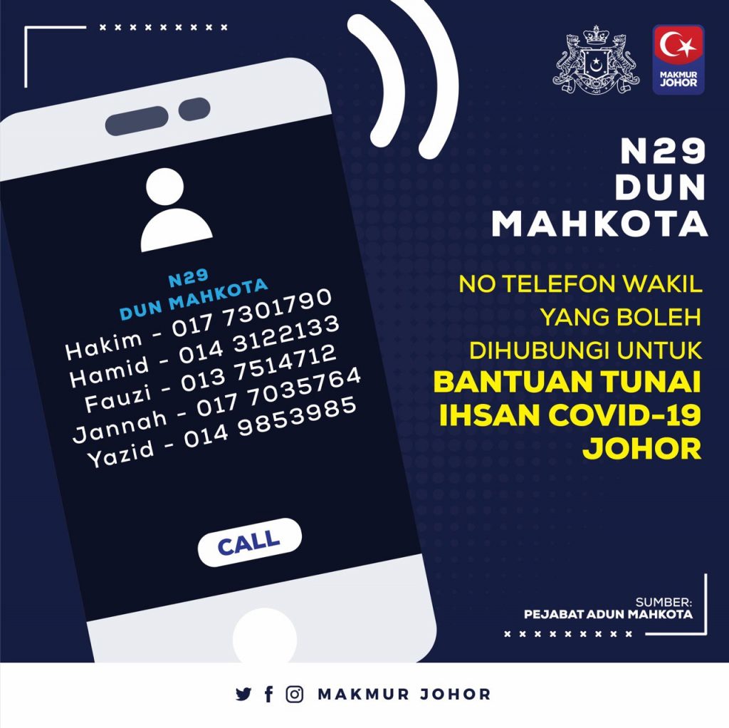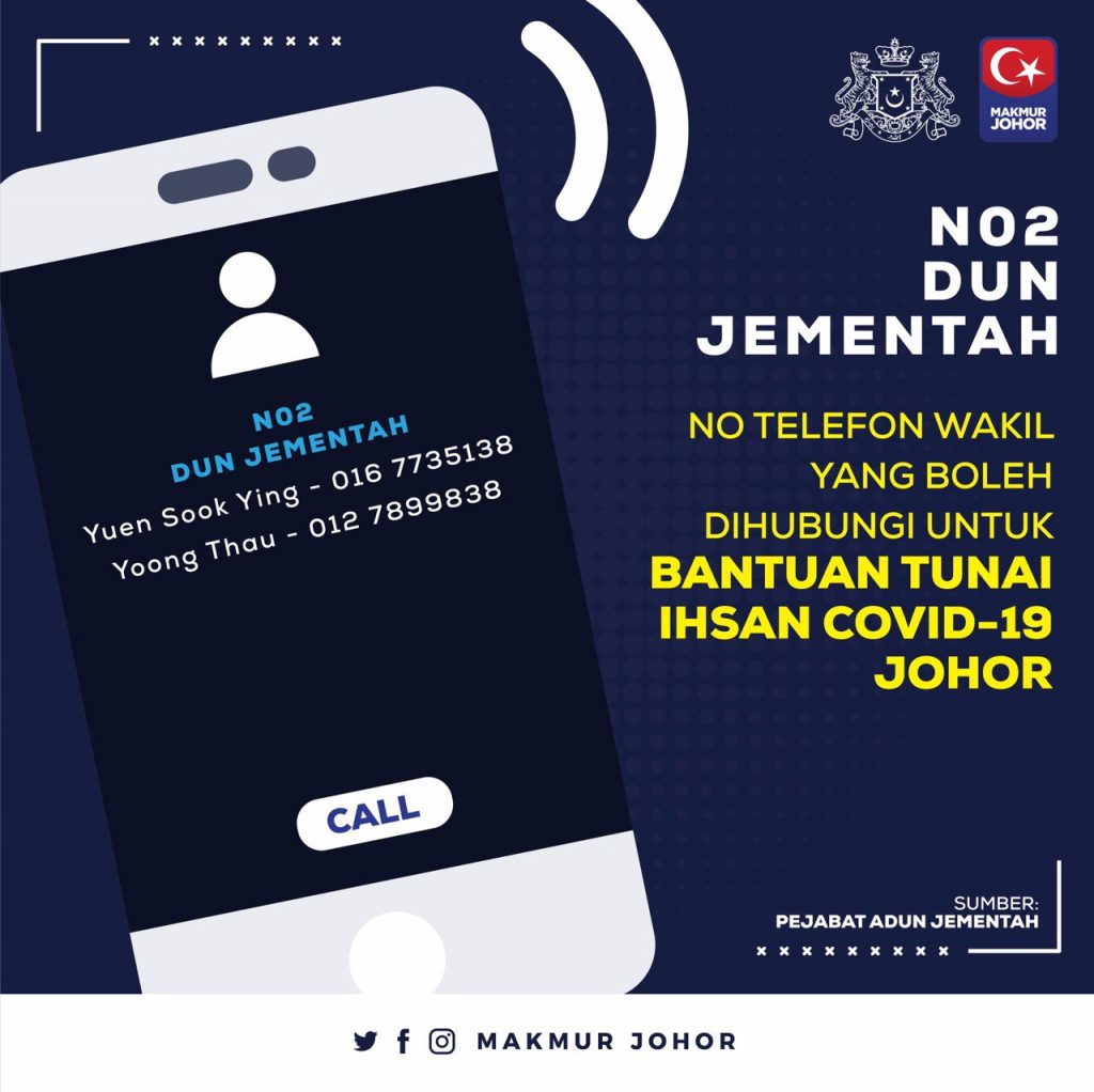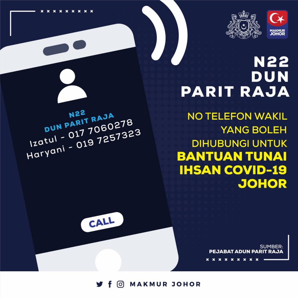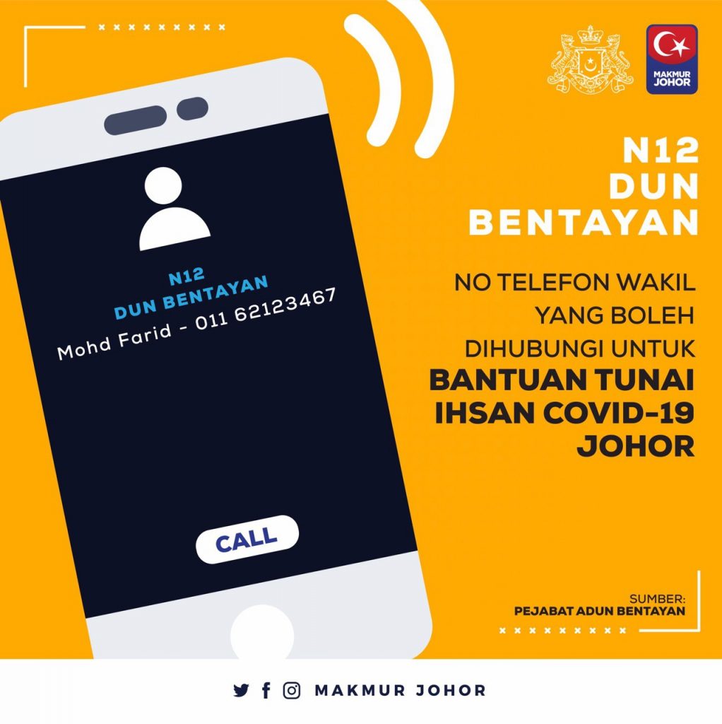 “Ini termasuk sama ada mahu kami (Kerajaan Negeri Johor) buat melalui akaun-akaun bank yang dimaklumkan ataupun sekiranya tidak mempunyai akaun bank, mereka bolehlah berurusan dengan Pejabat Daerah melalui penghulu atau ketua kampung untuk mereka menerima bantuan yang ditetapkan,” katanya.