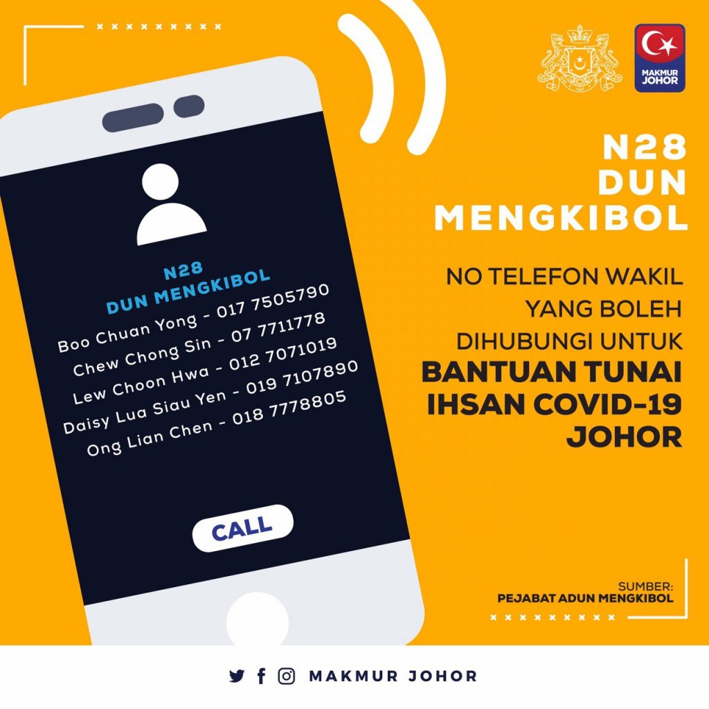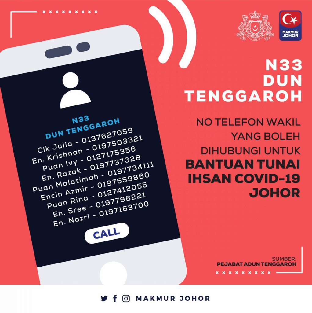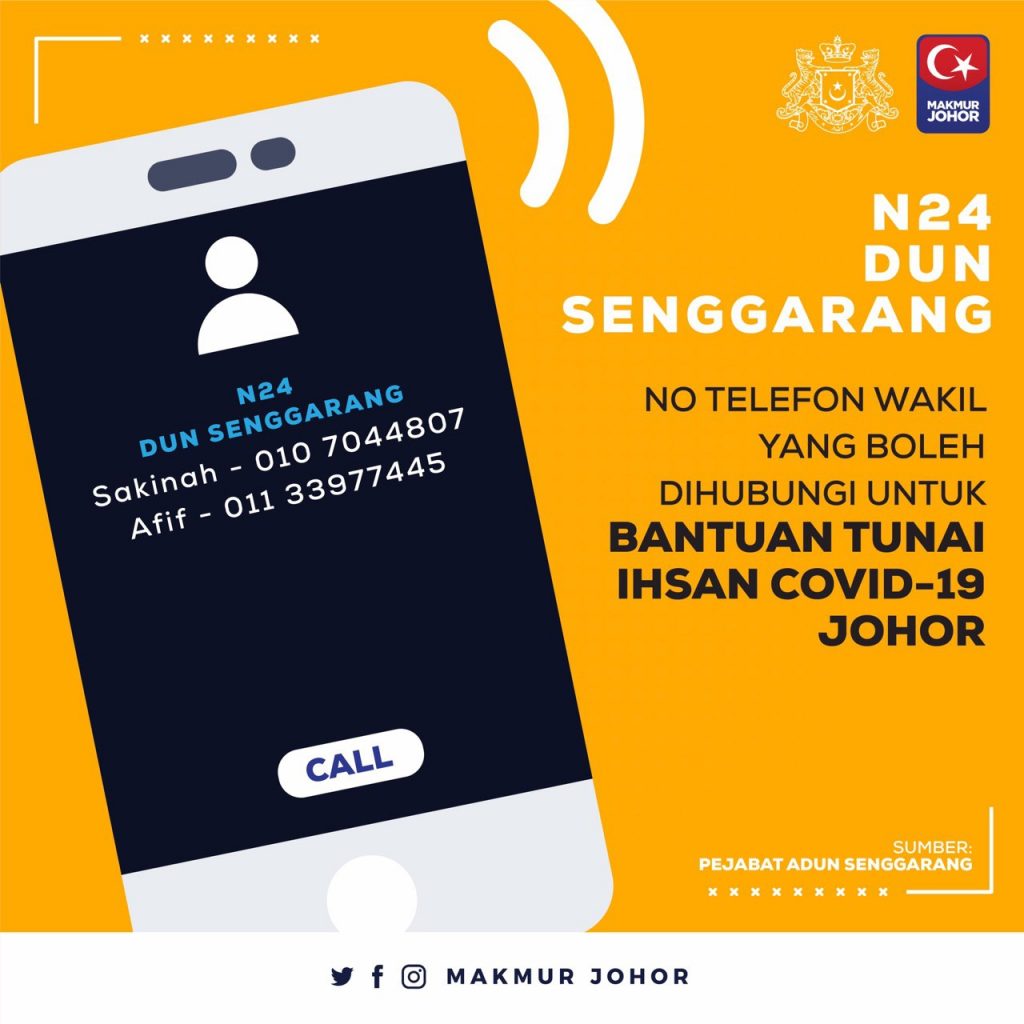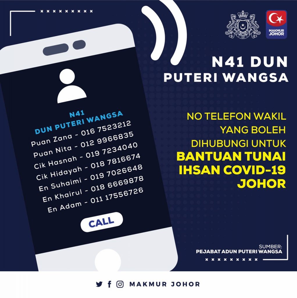 “Ini termasuk sama ada mahu kami (Kerajaan Negeri Johor) buat melalui akaun-akaun bank yang dimaklumkan ataupun sekiranya tidak mempunyai akaun bank, mereka bolehlah berurusan dengan Pejabat Daerah melalui penghulu atau ketua kampung untuk mereka menerima bantuan yang ditetapkan,” katanya.