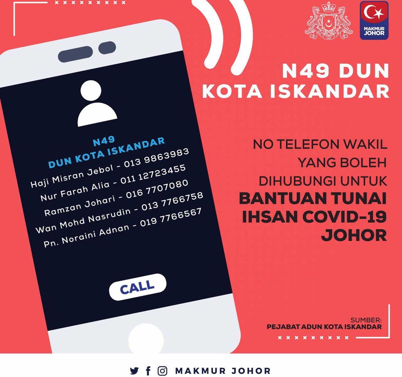 Hebahan Ini adalah untuk maklumat penduduk di DUN Kota Iskandar Sahaja.