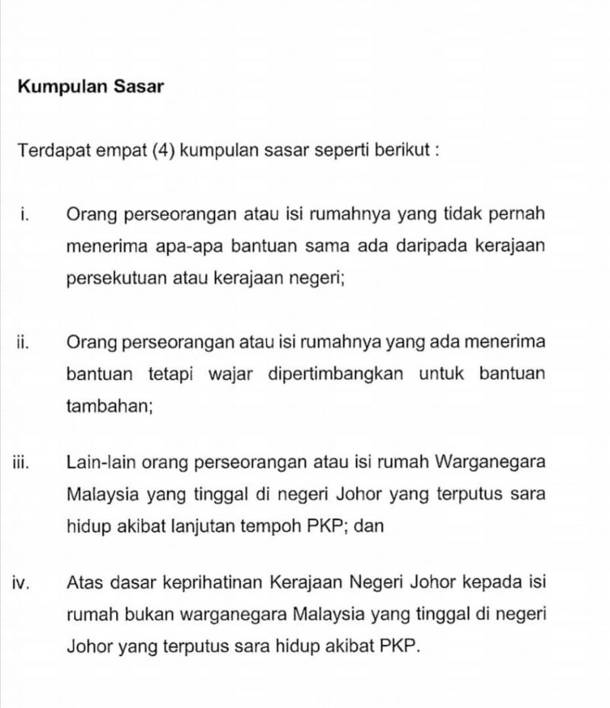 “Bagi melaksanakannya, pusat maklumat Ihsan Johor memerlukan setiap pemohon untuk menyatakan latar belakang sama ada mereka bekerja sendiri, diberhentikan kerja atau mempunyai tanggungan ramai.
